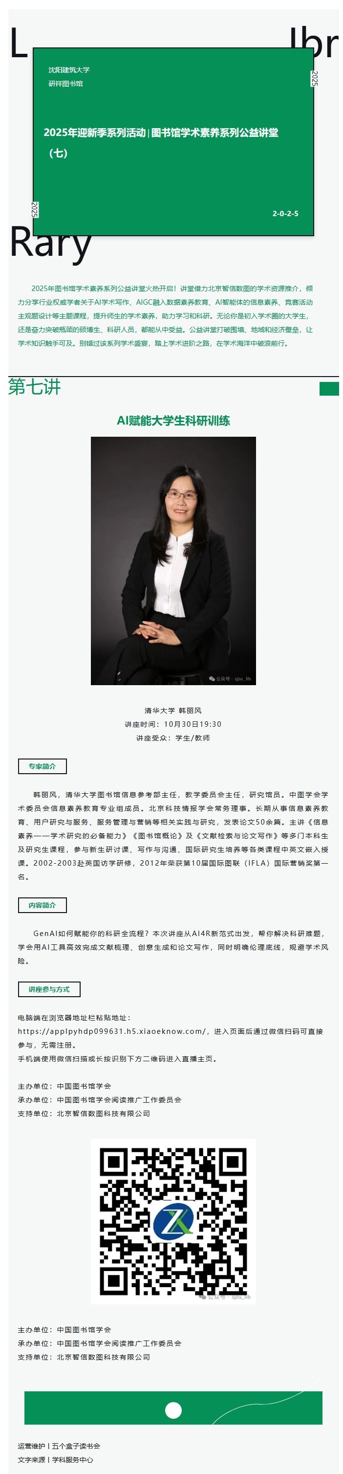 2025年迎新季系列活动∣图书馆学术素养系列公益讲堂(七)